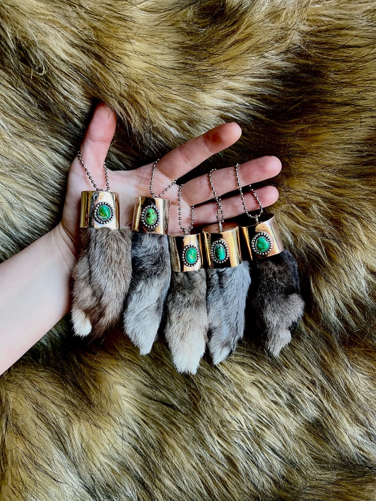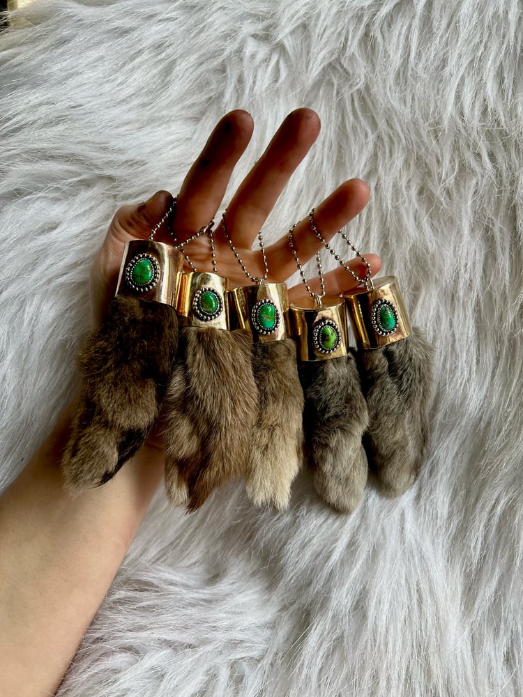 The rabbit’s feet were sourced from Silver Moon Rabbitry in Rolling Prairie, Indiana where the rabbits are humanely raised, colony style on their farm.