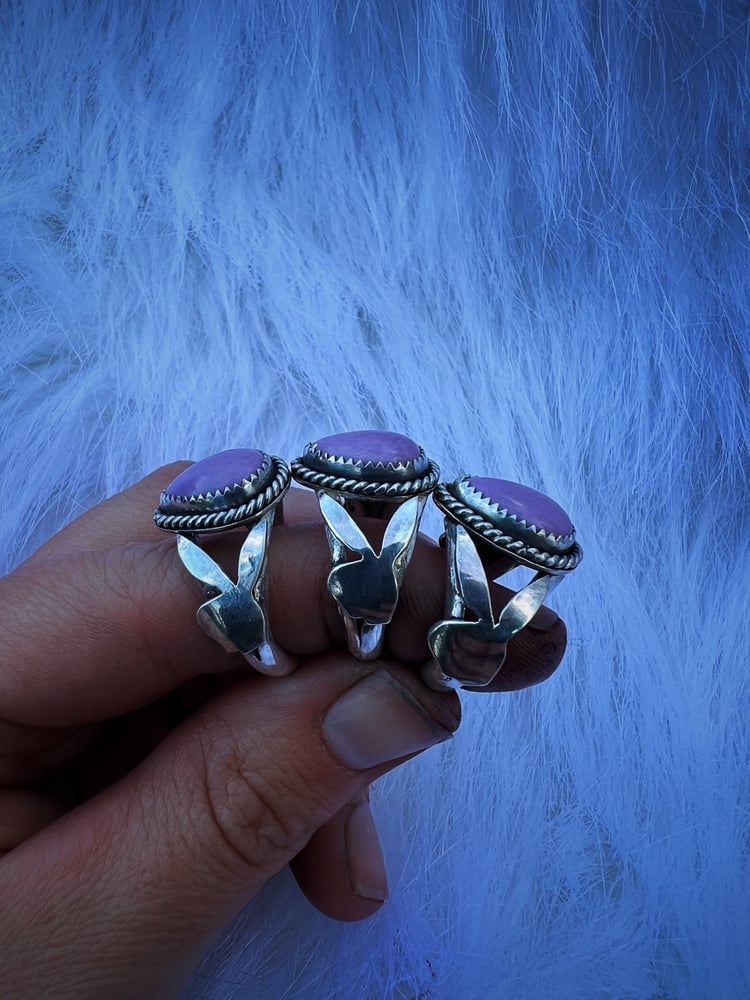 This a chunky sterling split band with 2 hand-sawn bunnies adorning each side.